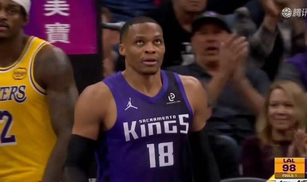 起初威少看着明晃晃的湖人球衣踉踉跄跄